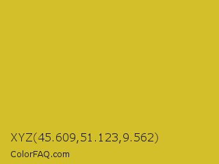 XYZ 45.609,51.123,9.562 Color is a normal yellow color and the nearest color is Old Gold #cfb53b. Hex code #d2bf29 and RGB value is rgb(210,191,41). In RGB color space, this color is composed of 82% red, 75% green, 16% blue, In CMYK color space, this color is composed of 0% cyan, 9% magenta, 80% yellow , 18% black , In HSL color space, this color has a hue angle of 53° , 67% saturation and 49% lightness.