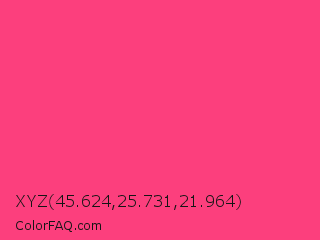 XYZ 45.624,25.731,21.964 Color is a light rose color and the nearest color is Sasquatch Socks #ff4681. Hex code #fc3f7d and RGB value is rgb(252,63,125). In RGB color space, this color is composed of 99% red, 25% green, 49% blue, In CMYK color space, this color is composed of 0% cyan, 75% magenta, 50% yellow , 1% black , In HSL color space, this color has a hue angle of 340° , 97% saturation and 62% lightness.