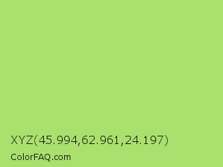 XYZ 45.994,62.961,24.197 Color is a light green color and the nearest color is Inchworm #b2ec5d. Hex code #aae06d and RGB value is rgb(170,224,109). In RGB color space, this color is composed of 67% red, 88% green, 43% blue, In CMYK color space, this color is composed of 24% cyan, 0% magenta, 51% yellow , 12% black , In HSL color space, this color has a hue angle of 88° , 65% saturation and 65% lightness.