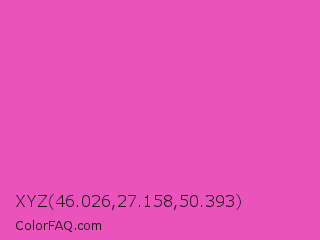 XYZ 46.026,27.158,50.393 Color is a light magenta color and the nearest color is Brilliant Rose #f653a6. Hex code #ea52bc and RGB value is rgb(234,82,188). In RGB color space, this color is composed of 92% red, 32% green, 74% blue, In CMYK color space, this color is composed of 0% cyan, 65% magenta, 20% yellow , 8% black , In HSL color space, this color has a hue angle of 318° , 78% saturation and 62% lightness.