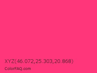 XYZ 46.072,25.303,20.868 Color is a light rose color and the nearest color is Sasquatch Socks #ff4681. Hex code #ff367a and RGB value is rgb(255,54,122). In RGB color space, this color is composed of 100% red, 21% green, 48% blue, In CMYK color space, this color is composed of 0% cyan, 79% magenta, 52% yellow , 0% black , In HSL color space, this color has a hue angle of 340° , 100% saturation and 61% lightness.