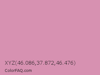 XYZ 46.086,37.872,46.476 Color is a light rose color and the nearest color is Can Can #d591a4. Hex code #d791b1 and RGB value is rgb(215,145,177). In RGB color space, this color is composed of 84% red, 57% green, 69% blue, In CMYK color space, this color is composed of 0% cyan, 33% magenta, 18% yellow , 16% black , In HSL color space, this color has a hue angle of 333° , 47% saturation and 71% lightness.