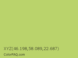 XYZ 46.198,58.089,22.687 Color is a light lime color and the nearest color is Wild Willow #b9c46a. Hex code #bad36b and RGB value is rgb(186,211,107). In RGB color space, this color is composed of 73% red, 83% green, 42% blue, In CMYK color space, this color is composed of 12% cyan, 0% magenta, 49% yellow , 17% black , In HSL color space, this color has a hue angle of 74° , 54% saturation and 62% lightness.
