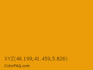 XYZ 46.199,41.459,5.826 Color is a normal orange color and the nearest color is Gamboge #e49b0f. Hex code #eb9c09 and RGB value is rgb(235,156,9). In RGB color space, this color is composed of 92% red, 61% green, 4% blue, In CMYK color space, this color is composed of 0% cyan, 34% magenta, 96% yellow , 8% black , In HSL color space, this color has a hue angle of 39° , 93% saturation and 48% lightness.