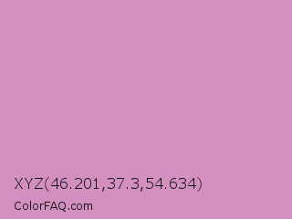 XYZ 46.201,37.3,54.634 Color is a light magenta color and the nearest color is Shocking #e292c0. Hex code #d38fc0 and RGB value is rgb(211,143,192). In RGB color space, this color is composed of 83% red, 56% green, 75% blue, In CMYK color space, this color is composed of 0% cyan, 32% magenta, 9% yellow , 17% black , In HSL color space, this color has a hue angle of 317° , 44% saturation and 69% lightness.