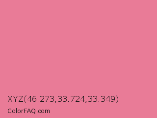 XYZ 46.273,33.724,33.349 Color is a light red color and the nearest color is Bright Blush #e47698. Hex code #e97b97 and RGB value is rgb(233,123,151). In RGB color space, this color is composed of 91% red, 48% green, 59% blue, In CMYK color space, this color is composed of 0% cyan, 47% magenta, 35% yellow , 9% black , In HSL color space, this color has a hue angle of 345° , 71% saturation and 70% lightness.