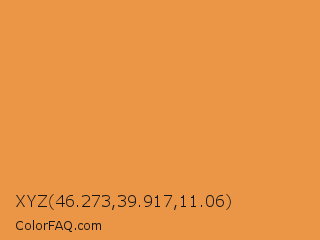 XYZ 46.273,39.917,11.06 Color is a normal orange color and the nearest color is Tigers Eye #e08d3c. Hex code #eb9646 and RGB value is rgb(235,150,70). In RGB color space, this color is composed of 92% red, 59% green, 27% blue, In CMYK color space, this color is composed of 0% cyan, 36% magenta, 70% yellow , 8% black , In HSL color space, this color has a hue angle of 29° , 80% saturation and 60% lightness.