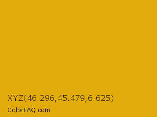 XYZ 46.296,45.479,6.625 Color is a normal orange color and the nearest color is Galliano #dcb20c. Hex code #e3ab0a and RGB value is rgb(227,171,10). In RGB color space, this color is composed of 89% red, 67% green, 4% blue, In CMYK color space, this color is composed of 0% cyan, 25% magenta, 96% yellow , 11% black , In HSL color space, this color has a hue angle of 45° , 92% saturation and 46% lightness.