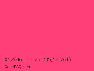 XYZ 46.343,26.235,19.761 Color is a light rose color and the nearest color is Sasquatch Socks #ff4681. Hex code #ff4076 and RGB value is rgb(255,64,118). In RGB color space, this color is composed of 100% red, 25% green, 46% blue, In CMYK color space, this color is composed of 0% cyan, 75% magenta, 54% yellow , 0% black , In HSL color space, this color has a hue angle of 343° , 100% saturation and 63% lightness.