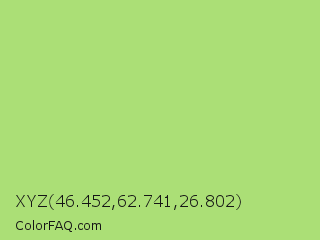 XYZ 46.452,62.741,26.802 Color is a light green color and the nearest color is Feijoa #9fdd8c. Hex code #abdf76 and RGB value is rgb(171,223,118). In RGB color space, this color is composed of 67% red, 87% green, 46% blue, In CMYK color space, this color is composed of 23% cyan, 0% magenta, 47% yellow , 13% black , In HSL color space, this color has a hue angle of 90° , 62% saturation and 67% lightness.