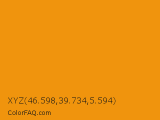 XYZ 46.598,39.734,5.594 Color is a normal orange color and the nearest color is Gamboge #e49b0f. Hex code #f0940d and RGB value is rgb(240,148,13). In RGB color space, this color is composed of 94% red, 58% green, 5% blue, In CMYK color space, this color is composed of 0% cyan, 38% magenta, 95% yellow , 6% black , In HSL color space, this color has a hue angle of 36° , 90% saturation and 50% lightness.