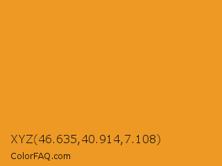 XYZ 46.635,40.914,7.108 Color is a normal orange color and the nearest color is Fire Bush #e89928. Hex code #ed9924 and RGB value is rgb(237,153,36). In RGB color space, this color is composed of 93% red, 60% green, 14% blue, In CMYK color space, this color is composed of 0% cyan, 35% magenta, 85% yellow , 7% black , In HSL color space, this color has a hue angle of 35° , 85% saturation and 54% lightness.