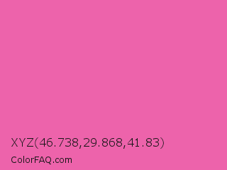 XYZ 46.738,29.868,41.83 Color is a light rose color and the nearest color is Cyclamen #f56fa1. Hex code #ed63ab and RGB value is rgb(237,99,171). In RGB color space, this color is composed of 93% red, 39% green, 67% blue, In CMYK color space, this color is composed of 0% cyan, 58% magenta, 28% yellow , 7% black , In HSL color space, this color has a hue angle of 329° , 79% saturation and 66% lightness.