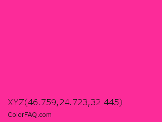 XYZ 46.759,24.723,32.445 Color is a normal rose color and the nearest color is Wild Strawberry Crayola #ff3399. Hex code #fc2b99 and RGB value is rgb(252,43,153). In RGB color space, this color is composed of 99% red, 17% green, 60% blue, In CMYK color space, this color is composed of 0% cyan, 83% magenta, 39% yellow , 1% black , In HSL color space, this color has a hue angle of 328° , 97% saturation and 58% lightness.