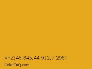XYZ 46.845,44.912,7.298 Color is a normal orange color and the nearest color is Urobilin #e1ad21. Hex code #e6a81c and RGB value is rgb(230,168,28). In RGB color space, this color is composed of 90% red, 66% green, 11% blue, In CMYK color space, this color is composed of 0% cyan, 27% magenta, 88% yellow , 10% black , In HSL color space, this color has a hue angle of 42° , 80% saturation and 51% lightness.