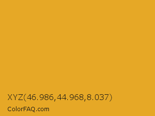 XYZ 46.986,44.968,8.037 Color is a normal orange color and the nearest color is Fuel Yellow #eca927. Hex code #e6a826 and RGB value is rgb(230,168,38). In RGB color space, this color is composed of 90% red, 66% green, 15% blue, In CMYK color space, this color is composed of 0% cyan, 27% magenta, 83% yellow , 10% black , In HSL color space, this color has a hue angle of 41° , 79% saturation and 53% lightness.
