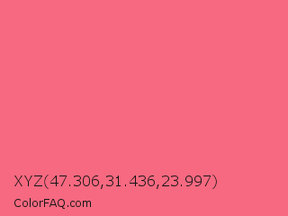 XYZ 47.306,31.436,23.997 Color is a light red color and the nearest color is Ultra Red #fc6c85. Hex code #f76980 and RGB value is rgb(247,105,128). In RGB color space, this color is composed of 97% red, 41% green, 50% blue, In CMYK color space, this color is composed of 0% cyan, 57% magenta, 48% yellow , 3% black , In HSL color space, this color has a hue angle of 350° , 90% saturation and 69% lightness.