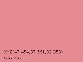 XYZ 47.454,37.561,32.353 Color is a light red color and the nearest color is Ruddy Pink #e18e96. Hex code #e78b93 and RGB value is rgb(231,139,147). In RGB color space, this color is composed of 91% red, 55% green, 58% blue, In CMYK color space, this color is composed of 0% cyan, 40% magenta, 36% yellow , 9% black , In HSL color space, this color has a hue angle of 355° , 66% saturation and 73% lightness.