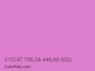 XYZ 47.756,34.449,60.632 Color is a light magenta color and the nearest color is French Mauve #d473d4. Hex code #dc7ecb and RGB value is rgb(220,126,203). In RGB color space, this color is composed of 86% red, 49% green, 80% blue, In CMYK color space, this color is composed of 0% cyan, 43% magenta, 8% yellow , 14% black , In HSL color space, this color has a hue angle of 311° , 57% saturation and 68% lightness.