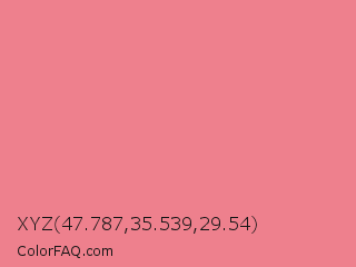 XYZ 47.787,35.539,29.54 Color is a light red color and the nearest color is Light Coral #f08080. Hex code #ee808d and RGB value is rgb(238,128,141). In RGB color space, this color is composed of 93% red, 50% green, 55% blue, In CMYK color space, this color is composed of 0% cyan, 46% magenta, 41% yellow , 7% black , In HSL color space, this color has a hue angle of 353° , 76% saturation and 72% lightness.
