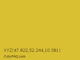 XYZ 47.822,52.244,10.581 Color is a normal yellow color and the nearest color is Old Gold #cfb53b. Hex code #d9bf32 and RGB value is rgb(217,191,50). In RGB color space, this color is composed of 85% red, 75% green, 20% blue, In CMYK color space, this color is composed of 0% cyan, 12% magenta, 77% yellow , 15% black , In HSL color space, this color has a hue angle of 51° , 69% saturation and 52% lightness.