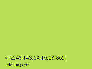 XYZ 48.143,64.19,18.869 Color is a light lime color and the nearest color is June Bud #bdda57. Hex code #b8e057 and RGB value is rgb(184,224,87). In RGB color space, this color is composed of 72% red, 88% green, 34% blue, In CMYK color space, this color is composed of 18% cyan, 0% magenta, 61% yellow , 12% black , In HSL color space, this color has a hue angle of 78° , 69% saturation and 61% lightness.