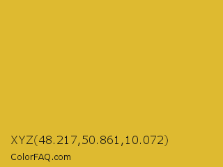 XYZ 48.217,50.861,10.072 Color is a normal yellow color and the nearest color is Meat Brown #e5b73b. Hex code #deba30 and RGB value is rgb(222,186,48). In RGB color space, this color is composed of 87% red, 73% green, 19% blue, In CMYK color space, this color is composed of 0% cyan, 16% magenta, 78% yellow , 13% black , In HSL color space, this color has a hue angle of 48° , 73% saturation and 53% lightness.
