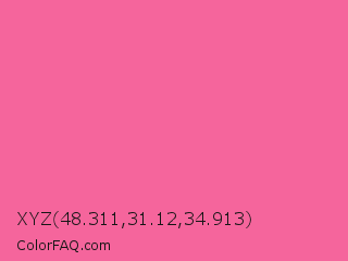 XYZ 48.311,31.12,34.913 Color is a light rose color and the nearest color is French Pink #fd6c9e. Hex code #f5659c and RGB value is rgb(245,101,156). In RGB color space, this color is composed of 96% red, 40% green, 61% blue, In CMYK color space, this color is composed of 0% cyan, 59% magenta, 36% yellow , 4% black , In HSL color space, this color has a hue angle of 337° , 88% saturation and 68% lightness.