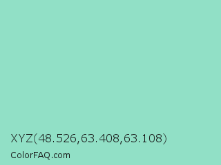 XYZ 48.526,63.408,63.108 Color is a light green color and the nearest color is Middle Blue Green #8dd9cc. Hex code #91e0c6 and RGB value is rgb(145,224,198). In RGB color space, this color is composed of 57% red, 88% green, 78% blue, In CMYK color space, this color is composed of 35% cyan, 0% magenta, 12% yellow , 12% black , In HSL color space, this color has a hue angle of 160° , 56% saturation and 72% lightness.