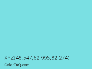 XYZ 48.547,62.995,82.274 Color is a light cyan color and the nearest color is Spray #79deec. Hex code #7ae0e3 and RGB value is rgb(122,224,227). In RGB color space, this color is composed of 48% red, 88% green, 89% blue, In CMYK color space, this color is composed of 46% cyan, 1% magenta, 0% yellow , 11% black , In HSL color space, this color has a hue angle of 182° , 65% saturation and 68% lightness.
