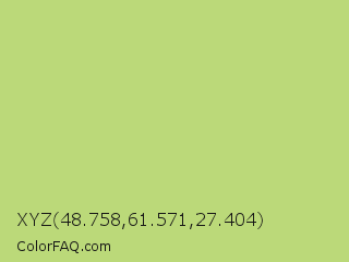 XYZ 48.758,61.571,27.404 Color is a light lime color and the nearest color is Yellow Green #c5e17a. Hex code #bbd979 and RGB value is rgb(187,217,121). In RGB color space, this color is composed of 73% red, 85% green, 47% blue, In CMYK color space, this color is composed of 14% cyan, 0% magenta, 44% yellow , 15% black , In HSL color space, this color has a hue angle of 79° , 56% saturation and 66% lightness.