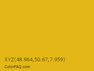 XYZ 48.964,50.67,7.959 Color is a normal yellow color and the nearest color is Gold Tips #deba13. Hex code #e3b816 and RGB value is rgb(227,184,22). In RGB color space, this color is composed of 89% red, 72% green, 9% blue, In CMYK color space, this color is composed of 0% cyan, 19% magenta, 90% yellow , 11% black , In HSL color space, this color has a hue angle of 47° , 82% saturation and 49% lightness.