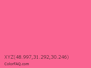 XYZ 48.997,31.292,30.246 Color is a light rose color and the nearest color is Light Crimson #f56991. Hex code #fa6391 and RGB value is rgb(250,99,145). In RGB color space, this color is composed of 98% red, 39% green, 57% blue, In CMYK color space, this color is composed of 0% cyan, 60% magenta, 42% yellow , 2% black , In HSL color space, this color has a hue angle of 342° , 94% saturation and 68% lightness.