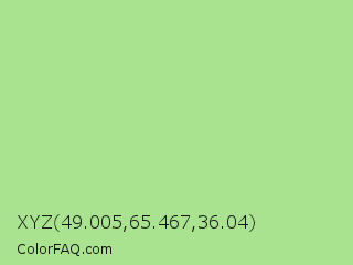XYZ 49.005,65.467,36.04 Color is a light green color and the nearest color is Feijoa #9fdd8c. Hex code #aae38f and RGB value is rgb(170,227,143). In RGB color space, this color is composed of 67% red, 89% green, 56% blue, In CMYK color space, this color is composed of 25% cyan, 0% magenta, 37% yellow , 11% black , In HSL color space, this color has a hue angle of 101° , 60% saturation and 73% lightness.