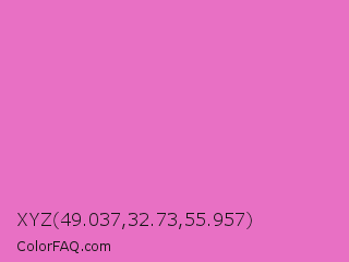 XYZ 49.037,32.73,55.957 Color is a light magenta color and the nearest color is Persian Pink #f77fbe. Hex code #e870c4 and RGB value is rgb(232,112,196). In RGB color space, this color is composed of 91% red, 44% green, 77% blue, In CMYK color space, this color is composed of 0% cyan, 52% magenta, 16% yellow , 9% black , In HSL color space, this color has a hue angle of 318° , 72% saturation and 67% lightness.