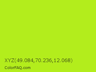 XYZ 49.084,70.236,12.068 Color is a normal lime color and the nearest color is Inch Worm #b0e313. Hex code #b3ed1c and RGB value is rgb(179,237,28). In RGB color space, this color is composed of 70% red, 93% green, 11% blue, In CMYK color space, this color is composed of 24% cyan, 0% magenta, 88% yellow , 7% black , In HSL color space, this color has a hue angle of 77° , 85% saturation and 52% lightness.