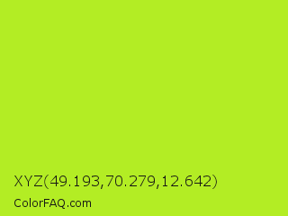 XYZ 49.193,70.279,12.642 Color is a normal lime color and the nearest color is Green Lizard #a7f432. Hex code #b3ed24 and RGB value is rgb(179,237,36). In RGB color space, this color is composed of 70% red, 93% green, 14% blue, In CMYK color space, this color is composed of 24% cyan, 0% magenta, 85% yellow , 7% black , In HSL color space, this color has a hue angle of 77° , 85% saturation and 54% lightness.