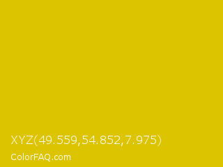 XYZ 49.559,54.852,7.975 Color is a normal yellow color and the nearest color is Corn #e7bf05. Hex code #ddc400 and RGB value is rgb(221,196,0). In RGB color space, this color is composed of 87% red, 77% green, 0% blue, In CMYK color space, this color is composed of 0% cyan, 11% magenta, 100% yellow , 13% black , In HSL color space, this color has a hue angle of 53° , 100% saturation and 43% lightness.