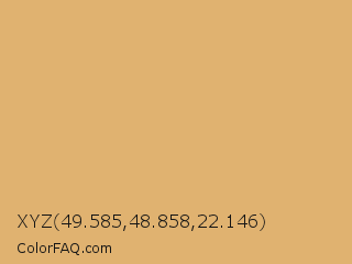 XYZ 49.585,48.858,22.146 Color is a light orange color and the nearest color is Harvest Gold #e0b974. Hex code #e0b270 and RGB value is rgb(224,178,112). In RGB color space, this color is composed of 88% red, 70% green, 44% blue, In CMYK color space, this color is composed of 0% cyan, 21% magenta, 50% yellow , 12% black , In HSL color space, this color has a hue angle of 35° , 64% saturation and 66% lightness.