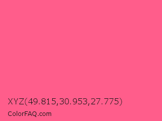 XYZ 49.815,30.953,27.775 Color is a light rose color and the nearest color is Strawberry #fc5a8d. Hex code #ff5d8b and RGB value is rgb(255,93,139). In RGB color space, this color is composed of 100% red, 36% green, 55% blue, In CMYK color space, this color is composed of 0% cyan, 64% magenta, 45% yellow , 0% black , In HSL color space, this color has a hue angle of 343° , 100% saturation and 68% lightness.