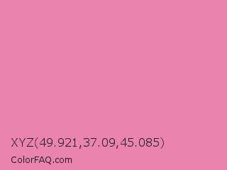 XYZ 49.921,37.09,45.085 Color is a light rose color and the nearest color is Carissma #ea88a8. Hex code #ea84af and RGB value is rgb(234,132,175). In RGB color space, this color is composed of 92% red, 52% green, 69% blue, In CMYK color space, this color is composed of 0% cyan, 44% magenta, 25% yellow , 8% black , In HSL color space, this color has a hue angle of 335° , 71% saturation and 72% lightness.