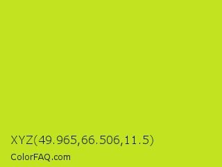 XYZ 49.965,66.506,11.5 Color is a normal yellow color and the nearest color is Las Palmas #c6e610. Hex code #c2e31f and RGB value is rgb(194,227,31). In RGB color space, this color is composed of 76% red, 89% green, 12% blue, In CMYK color space, this color is composed of 15% cyan, 0% magenta, 86% yellow , 11% black , In HSL color space, this color has a hue angle of 70° , 78% saturation and 51% lightness.