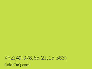 XYZ 49.978,65.21,15.583 Color is a normal lime color and the nearest color is June Bud #bdda57. Hex code #c2e045 and RGB value is rgb(194,224,69). In RGB color space, this color is composed of 76% red, 88% green, 27% blue, In CMYK color space, this color is composed of 13% cyan, 0% magenta, 69% yellow , 12% black , In HSL color space, this color has a hue angle of 72° , 71% saturation and 57% lightness.