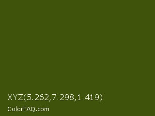 XYZ 5.262,7.298,1.419 Color is a very dark lime color and the nearest color is Verdun Green #495400. Hex code #40530a and RGB value is rgb(64,83,10). In RGB color space, this color is composed of 25% red, 33% green, 4% blue, In CMYK color space, this color is composed of 23% cyan, 0% magenta, 88% yellow , 67% black , In HSL color space, this color has a hue angle of 76° , 78% saturation and 18% lightness.