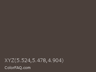 XYZ 5.524,5.478,4.904 Color is a dark orange color and the nearest color is Dark Puce #4f3a3c. Hex code #4b403b and RGB value is rgb(75,64,59). In RGB color space, this color is composed of 29% red, 25% green, 23% blue, In CMYK color space, this color is composed of 0% cyan, 15% magenta, 21% yellow , 71% black , In HSL color space, this color has a hue angle of 19° , 12% saturation and 26% lightness.