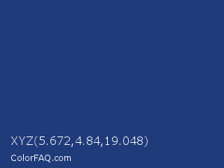 XYZ 5.672,4.84,19.048 Color is a dark blue color and the nearest color is Astronaut #283a77. Hex code #203b7a and RGB value is rgb(32,59,122). In RGB color space, this color is composed of 13% red, 23% green, 48% blue, In CMYK color space, this color is composed of 74% cyan, 52% magenta, 0% yellow , 52% black , In HSL color space, this color has a hue angle of 222° , 58% saturation and 30% lightness.
