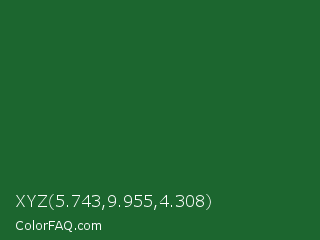 XYZ 5.743,9.955,4.308 Color is a dark green color and the nearest color is Green Pea #1d6142. Hex code #1c662f and RGB value is rgb(28,102,47). In RGB color space, this color is composed of 11% red, 40% green, 18% blue, In CMYK color space, this color is composed of 73% cyan, 0% magenta, 54% yellow , 60% black , In HSL color space, this color has a hue angle of 135° , 57% saturation and 25% lightness.