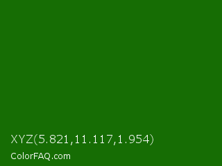 XYZ 5.821,11.117,1.954 Color is a very dark green color and the nearest color is Japanese Laurel #0a6906. Hex code #166d04 and RGB value is rgb(22,109,4). In RGB color space, this color is composed of 9% red, 43% green, 2% blue, In CMYK color space, this color is composed of 80% cyan, 0% magenta, 96% yellow , 57% black , In HSL color space, this color has a hue angle of 110° , 93% saturation and 22% lightness.