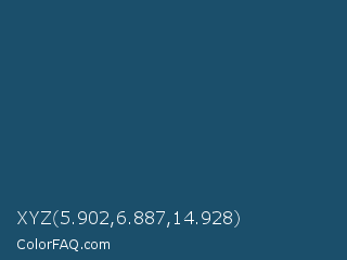 XYZ 5.902,6.887,14.928 Color is a dark blue color and the nearest color is Chathams Blue #175579. Hex code #1b4f6b and RGB value is rgb(27,79,107). In RGB color space, this color is composed of 11% red, 31% green, 42% blue, In CMYK color space, this color is composed of 75% cyan, 26% magenta, 0% yellow , 58% black , In HSL color space, this color has a hue angle of 201° , 60% saturation and 26% lightness.