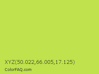 XYZ 50.022,66.005,17.125 Color is a normal lime color and the nearest color is June Bud #bdda57. Hex code #bfe24d and RGB value is rgb(191,226,77). In RGB color space, this color is composed of 75% red, 89% green, 30% blue, In CMYK color space, this color is composed of 15% cyan, 0% magenta, 66% yellow , 11% black , In HSL color space, this color has a hue angle of 74° , 72% saturation and 59% lightness.